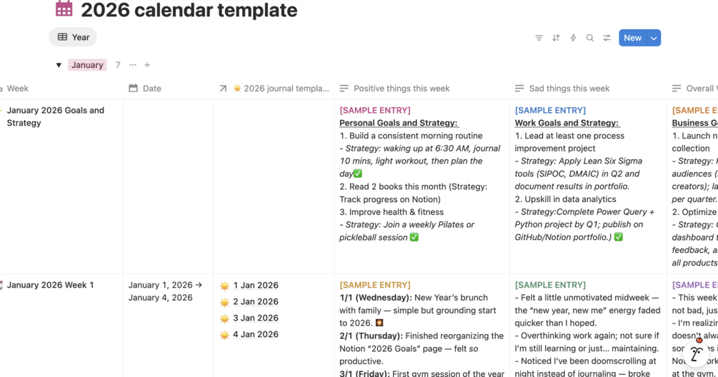 2026 Notion Calendar and Goals Tracker System